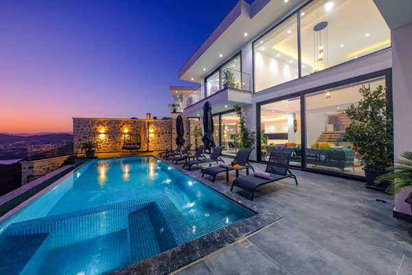 Antalya Kaş Kalkan bölgesinde bulunan Villa SOI; her odası panoramik muhteşem denize manzaralı, 6 kişinin konforlu konaklayabileceği, 3 yatak odası bulunan, ebeveyn odası küvetli, eşsiz bir tatil geçirmeniz için her ince detayı düşünülmüş, havuzlu lüks konseptli bir villadır.